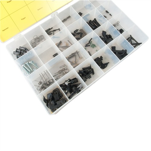 - 5 each - hammer, hammer spring, trigger, trigger spring, triggerguard, triggerguard roll pin, disconnector, disconnector spring, safety selector, magazine latch, magazine release button, magazine release spring, bolt catch, bolt catch plunger, bolt catch spring, bolt catch roll pin, front and rear takedown pins, extractor, ejector, ejector spring, grip screw, and washer.