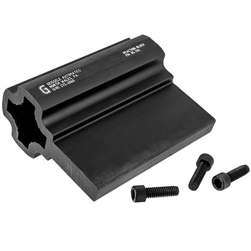 854014005984 The Geissele Reaction Block is designed to aid in the assembly of lower receivers. Once the armorer has installed the buffer tube onto the lower; the buffer tube and lower receiver assembly can be slid into the Reaction Block at the 12, 3, 6 and 9 o’clock positions. This allows the armorer to rotate the lower in 90 degree increments in the block simply by loosening the provided nylon screws, removing the lower, and sliding it back in at the desired orientation. The Reaction Block provides an ultra-stable platform for performing an array of lower receiver operations, as well as making the installation of the buffer retainer nut quick and easy. All while keeping both hands of the armorer free to work, saving both time and frustration.Backorderable, delivery time approx. 4-12 weeks from the USA warehouse.