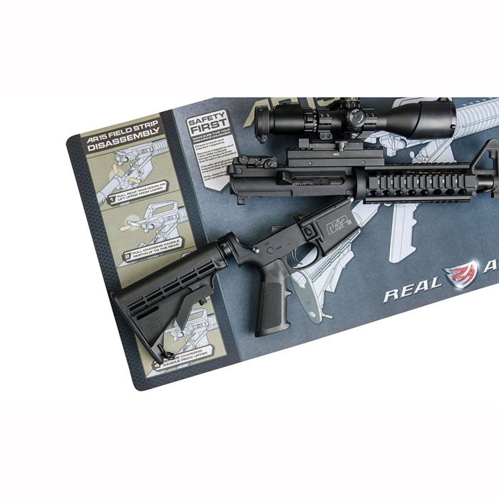 813119011955 The AR15 is undoubtedly America's most popular rifle, and all of those guns have to get cleaned sometime. The Real Avid AR15 Smart Mat Cleaning Mat makes that process easier, simpler and more organized than ever. The Real Avid AR15 Smart Mat Cleaning Mat includes a number of innovative elements that make it a must-have accessory for AR owners. For example, all the takedown procedures are spelled out right on the mat, and the mat is large enough to hold an entire field-stripped AR with room to spare. Measures 43 inches long and 16 inches wide Features parts bin that keeps small pieces secure Surface is oil resistant The Real Avid AR15 Smart Mat Cleaning Mat not only helps with disassembly and cleaning, it also protects your work surfaces from harsh cleaners and oils.Delivery time approx. 7-14 days.