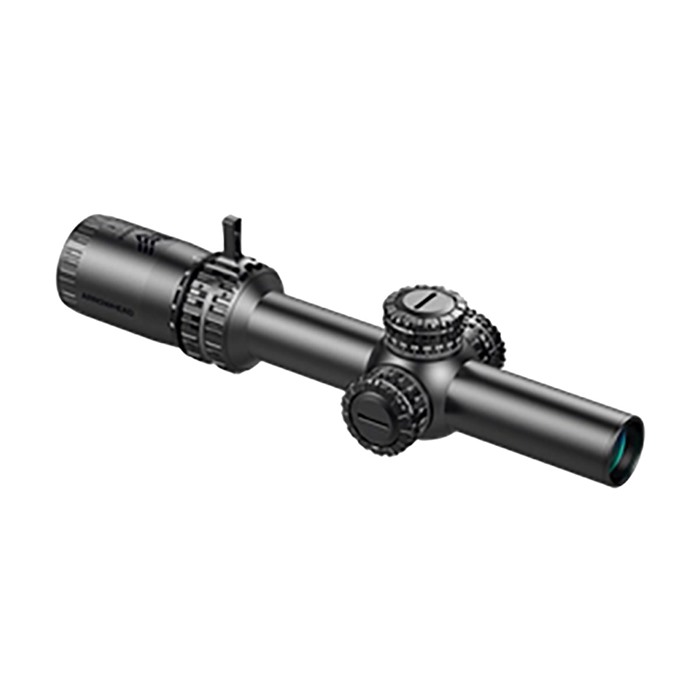 - It includes an illuminated Guerrilla Dot MOA Red reticle with two night vision settings, and a magnification range of 1-6x with a 24mm objective.
