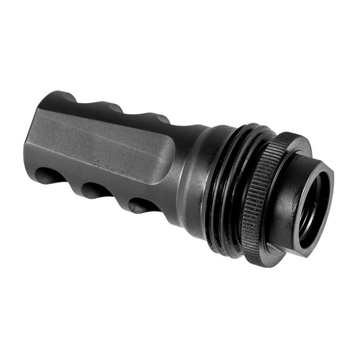 SilencerCo’s Hybrid ASR muzzle brake makes changing suppressors a simple, one-handed, on-and-off operation. This innovative 3-port muzzle brake is designed to work seamlessly with SilencerCo sound suppressors that utilize the Active Spring Retention (ASR) mounting system, including: