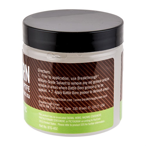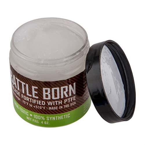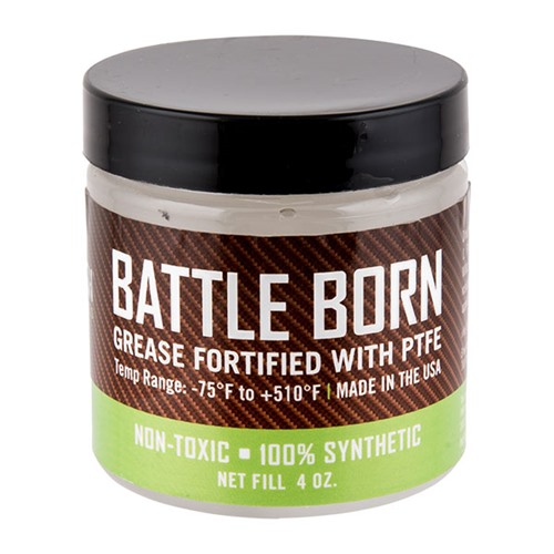 Available in a handy precision-applicator 12cc syringe or a 4 oz. jar, this grease keeps moving parts gliding smoothly, regardless of ambient temperature. Ensure your equipment performs at its best with BATTLE BORN GREASE!