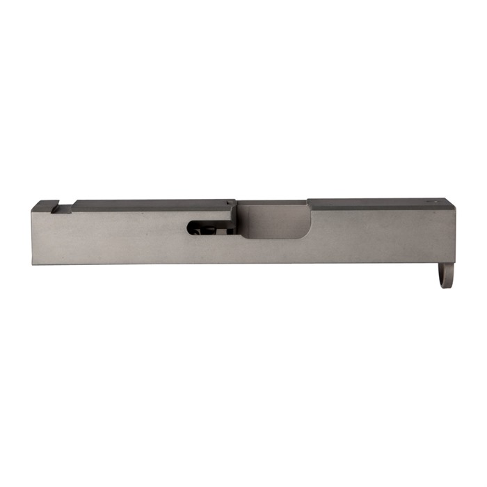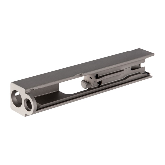 - The slide includes factory rear dovetail and front sight tenon hole, with chamfered edges, but requires a separate channel liner and recoil spring assembly.