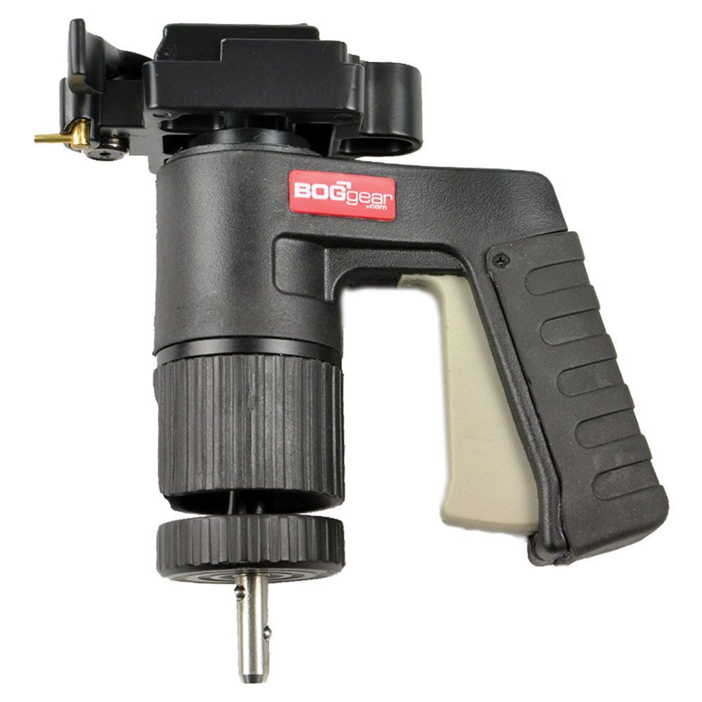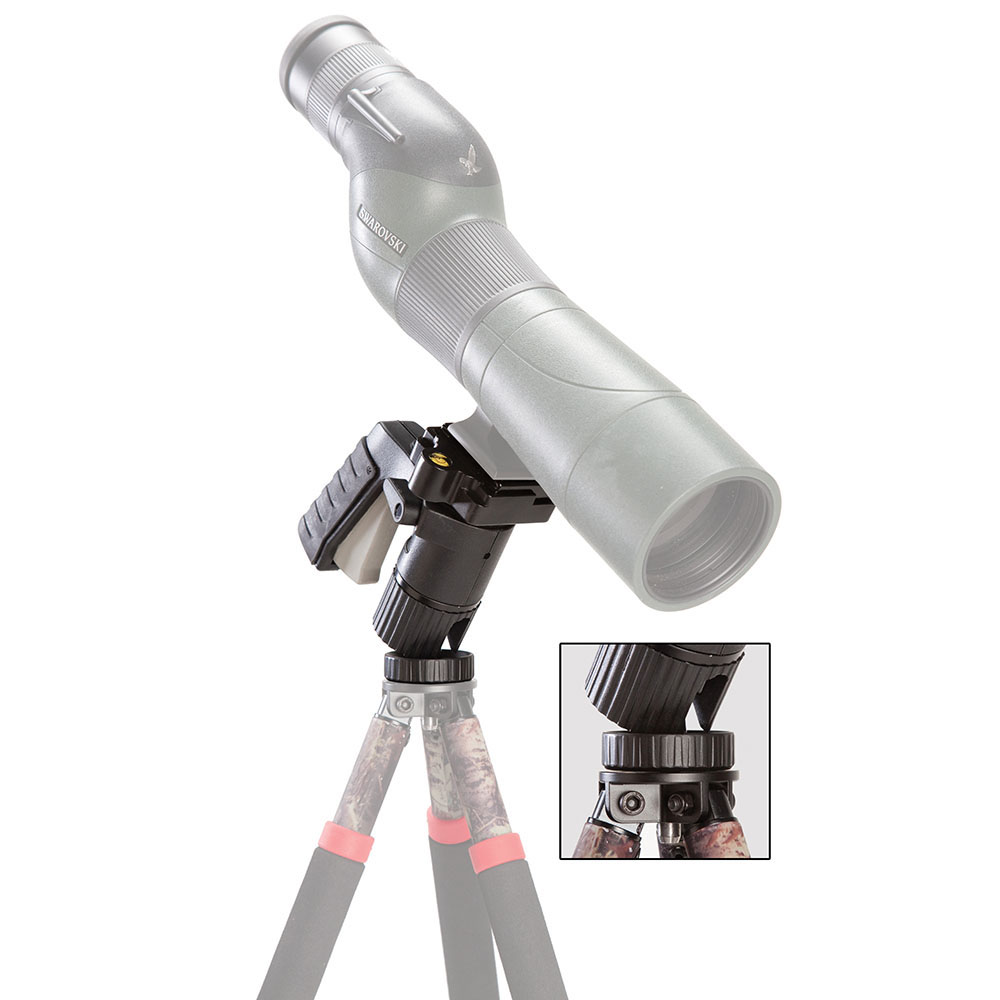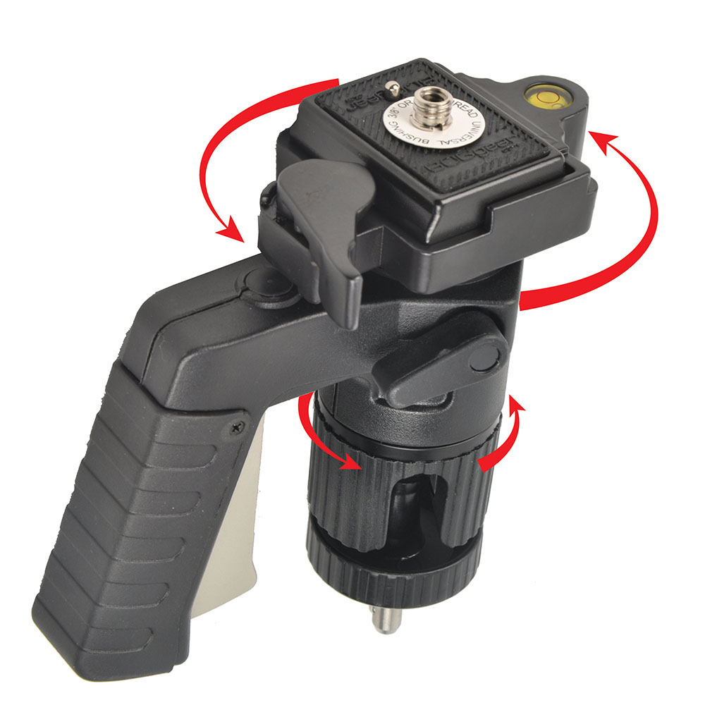 729806355465 • Pistol-grip style ball head allows for one-hand operation • Quick-change stem on bottom attaches to BOG-POD® shooting sticks with Switcheroo® Shooting System • Top lever release lock to prevent accidental lever release • Accessory plate has 1/4"-20 and 3/8"-16 thread bushings to fit most mounts • Weighs approximately 21 oz