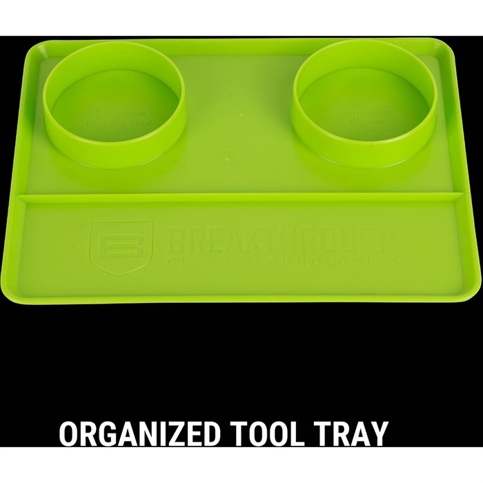 026509077589 SUPPRESSOR CLEANING KIT Elevate your firearm maintenance to a new level with the Breakthrough Clean Technologies® Suppressor Cleaning Kit. Provided in this kit is a 16 oz bottle of Breakthrough Clean Technologies® Suppressor Cleaner engineered to dissolve the toughest carbon deposits and fouling. The kit features a Soaking Tube for complete submersion of suppressor parts for a thorough cleaning process, leaving no residue or buildup behind. Two meticulously designed brushes help reach tough spots of your suppressor, removing stubborn fouling and carbon buildup. The retrieval tool is used to safely and easily put in and extract the suppressor in and out of the soaking tube. The kit is provides a storage tray to keep every essential tool in its designated place. Investing in the Breakthrough Clean Technologies® Suppressor Cleaning Kit isn't just a choice—it's a commitment to the long-term health and functionality of your suppressor-equipped firearms, empowering you to keep your firearms operating at their absolute best, shot after shot. FEATURES: ALL-IN-ONE SUPPRESSOR CLEANING KIT: Provides effortless suppressor cleaning process with a comprehensive kit that includes everything you need for thorough maintenance—Pack includes (1) 16oz. Suppressor Cleaner, (1) Soaking Tube, (2) Specialized Brushes, (1) Retrieval Tool, & (1) Organized Tool Tray. HIGH-PERFORMANCE SUPPRESSOR CLEANER: Provided in the kit is a 16 oz bottle of Breakthrough Clean Technologies® Suppressor Cleaner, known for its exceptional cleaning power. COMPATABILITY: Fits suppressors up to 2.375” in diameter and 8.5” in length. SOAKING TUBE INCLUDED: A Soaking Tube ensures optimal cleaning by allowing the suppressor components to be fully immersed for deep and thorough cleansing. SPECIALIZED BRUSHES: Two precision-engineered brushes are included to effectively remove carbon buildup and fouling, ensuring your suppressor operates in fullest potential. RETRIEVAL TOOL: This kit provides a specialized retrieval tool to extract cleaning patches & components safely & easily from the suppressor. ORGANIZED CLEANING TRAY: Keep all your cleaning tools in one place with the included organized tray, making maintenance sessions convenient & hassle-free. DURABLE & RELIABLE: Each component of the kit is constructed with high-quality materials, ensuring longevity & consistent performance in maintaining your suppressor. ENHANCED SUPPRESSOR PERFORMANCE: Regular use of this kit helps ensure your suppressor functions optimally, prolonging its lifespan and preserving its effectiveness in the field. *Do not submerge suppressors with aftermarket finishes. SPECIFICATIONS: Material: ABS Plastic Product Length: 6.5 Product Width: 3.75 Product Height: 9.5 Product Weight: 0.5Delivery time approx. 7-14 days.