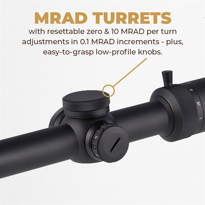 - Precision adjustments are possible with 0.1 MIL click value turrets, which are capped to prevent accidental changes, and the scope provides a generous 3.5-inch eye relief.
