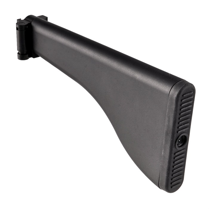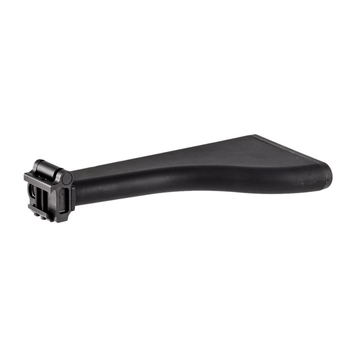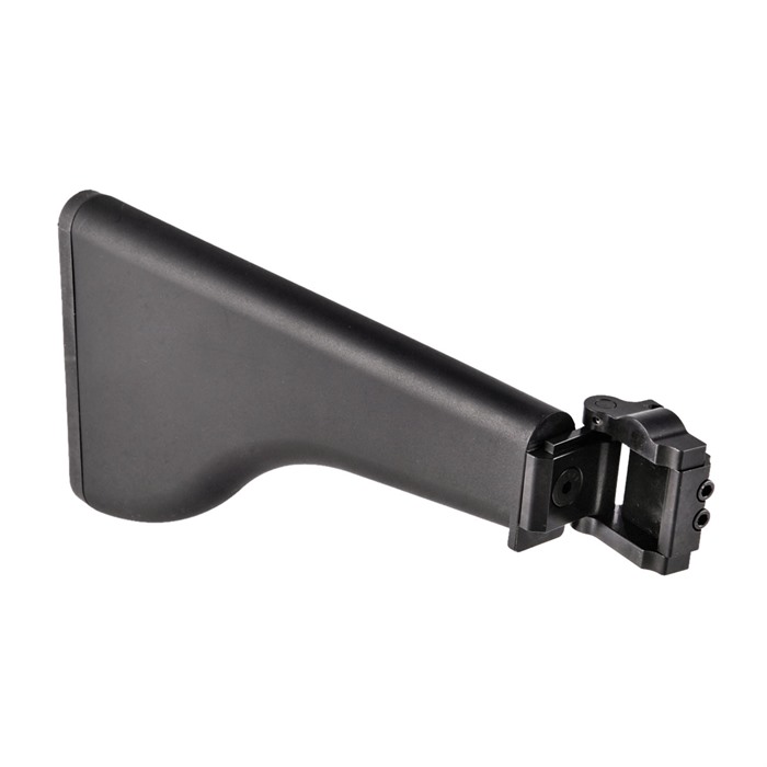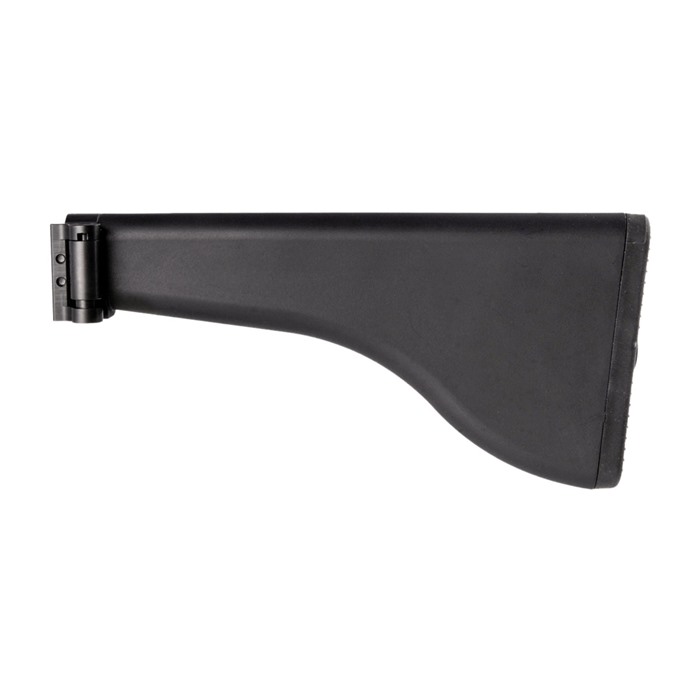 - The stock folds to the left, providing a slim profile that does not interfere with shooting when folded.