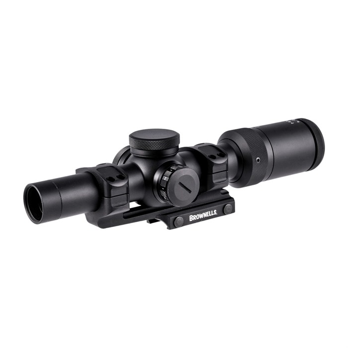 - The Brownells MPO 1-6x24mm SFP Rifle Scope features an illuminated "Donut" reticle for quick target acquisition and simple ranging, with a forgiving 3.5-inch eye relief.