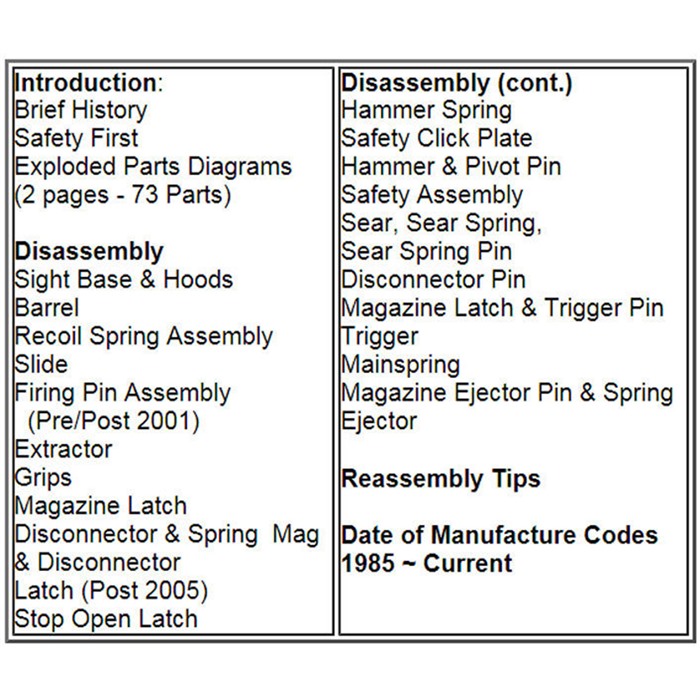 Jam-packed with detailed parts breakdowns and simple, intuitive procedural instructions, the Browning Buckmark Assembly and Disassembly Guide is the perfect addition to any owner's kit. Readers will even find some industry-insider tricks that will help with proper functioning.