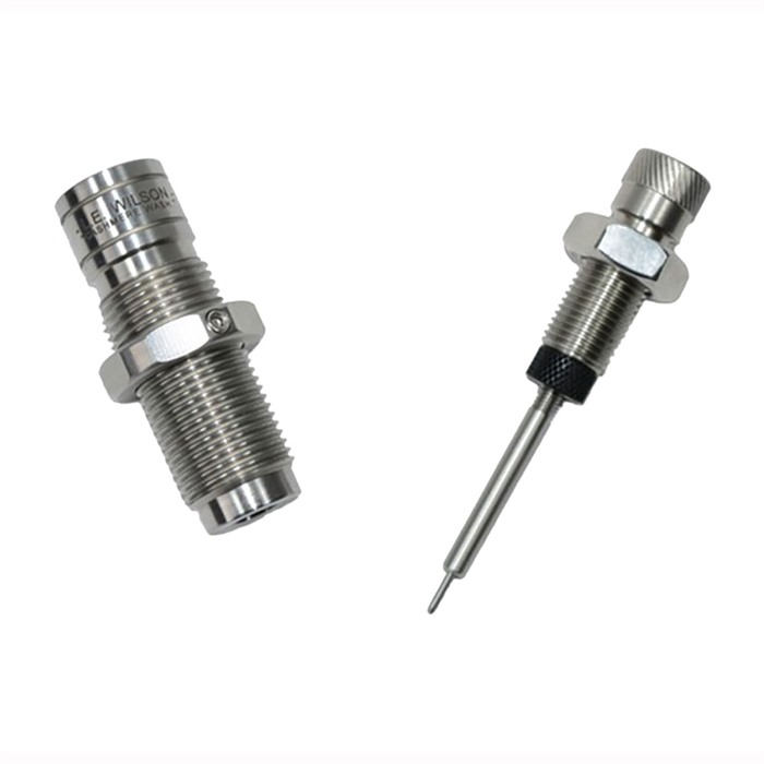 815145026477 The Wilson Bushing Type Full Length Sizing Die. This die will allow you to size the case neck to your desired neck tension along with sizing down the rest of the case body at the same time. Die includes an adjustable depth decapping rod. An extra Decapping Punch is included. These dies do not contain an expander. Made of High Quality Heat Treated Steel. These Full Length Bushing dies mimic the neck sizing of Wilsons’ neck sizing dies and are designed to leave 3/16” at the bottom of the case neck unsized, a practice many shooters prefer and find to be more accurate than sizing the full neck. Mad from High Quality Material - Hardened to L.E. Wilson Specifications Harder than a Grade 8 Bolt Interchangeable Bushings Standard 7/8ths Reloading Press Sizes Shoulder and Body Dimensions Stainless Parts for a Long Lasting Finish Durable and Accurate L.E. Wilson manufactured lock nut - thickness is .225" from inside to outermost edge .270" for height and 1.250" total width OD. Neck Bushing sold separately, we suggest using LE Wilson Neck bushings but Redding bushings will also fit.Delivery time approx. 7-14 days.