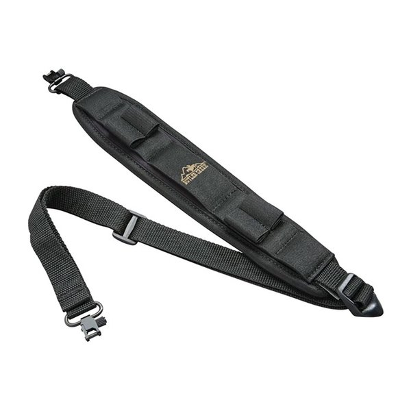 - The sling is available in black and popular camo patterns, designed in a 2-point style with a width of 2-1/4 inches, made from nylon and neoprene.