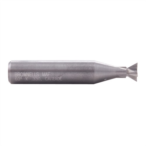 050806019720 Our special 65° shoulder Sight Base Cutter designed to cut dovetails for both standard Colt factory and mil-spec 1911 Autos, and for replacement sights like Wichita Hi-Mount, older Bo- Mar and others with a 65° shoulder. Some makers use a 60° dovetail on their rear sights and we also have a cutter to match them. For low-mount adjustable sights use the Standard Sight Base Cutter shown on this page. Actual cutting diameter is .330" so more than one pass will be required to install most sights. This is done on purpose to allow for factory variations in base width as well as milling tolerances. CAUTION: For use in milling machine only. Solid carbide cutter resists wear when cutting pistols made from hardened steel. 2" (5cm) long, 3⁄8" (9.5mm) diameter shank. 60° or 65° shoulder.Delivery time approx. 7-14 days.