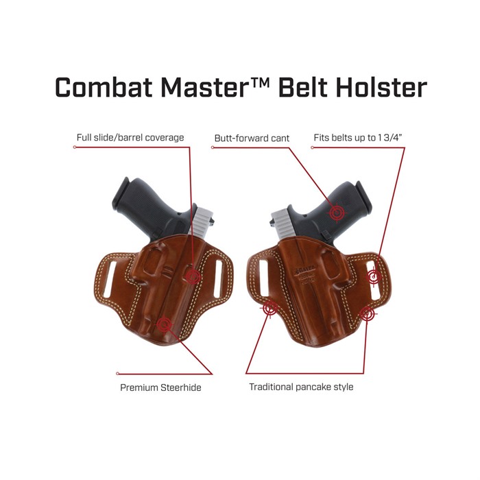 The Combat Master Holster by Galco International is designed for those who demand swift accessibility and secure retention for their defensive handguns. The open top design allows for a rapid draw and presentation, while the detailed molding ensures your firearm stays securely in place.