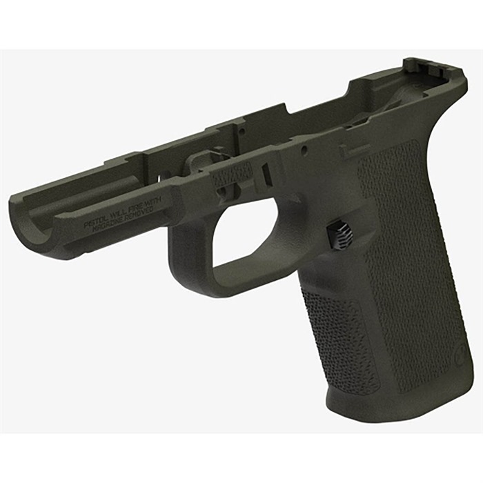 MAGPUL® EHG™ SG9™ GRIP FRAME FOR RUGER RXM™ FULL-SIZE   Ruger and Magpul have over 100 years of combined experience designing and producing innovative, high-quality products in the firearms space. Magpul recently created a new grip - the EHG RG9 - for the new Ruger RXM, a 9mm NATO pistol made in the USA at Ruger's factory in Prescott, AZ. The RXM is designed for personalization and customization for your self-defense needs. Want a different look or size? The Ruger Fire Control Insert (FCI) is compatible with Magpul EHG RG9 Grips available in Black, Flat Dark Earth, Stealth Gray, and Olive Drab Green in the OEM 15-round Compact size as well as the new 12-round Sub-Compact and 17-round Full-Size.   The EHG RG9 Grip packs many valuable features into its comfortable design. It includes a ¾-scale Magpul Trapezoidal Surface Projection (TSP) texture on the front strap, back strap, side panels, and forward index pads, providing improved tactile grip and weapons control where you need it most. To improve ergonomics, the grip also features an undercut trigger guard for comfortable handling of the gun. The magazine well is flared for faster and easier magazine changes, and the heel of the EHG RG9 Grip features a carry bob to minimize printing while concealed carrying. The magazine release scallop provides a recessed but easily accessed space for the magazine release, which has a textured, ridged surface to support more efficient magazine changes. The front of the grip features a universal rail for mounting lights and lasers to further enhance the pistol’s utility. Of course, the EHG RG9 uses a strong, durable polymer like other Magpul products.   The RXM Pistol ships from Ruger with the MAG1436 Compact EHG RG9 Grip plus two PMAG 15 GL9 15-round mags (the capacity-compliant version of the RXM ships with two 10-round GL9 PMAGs). This Full-Size Grip replaces the factory one for those with larger hands or who need greater capacity. It is compatible with the MAG546 Magpul PMAG® 17 GL9® for the G17 as well as the 21 and 27-round magazines with some protrusion from the bottom of the grip.   The EHG RG9 Grip also comes assembled with a Ruger-manufactured magazine release, release spring, slide-lock spring, and takedown-pin spring, and functions with most aftermarket Gen3 parts, so if any of these pieces need to be replaced or upgraded, spare parts are readily available.   Made in the USA.   FEATURES   TSP TEXTURE Magpul’s proprietary TSP texturing on the front and backstraps, side panels, and forward index pads of the RXM EHG provide solid purchase on the grip in all conditions FLARED MAG WELL To promote fast, efficient reloads, the RXM EHG has a flared mag well, which aids in loading the gun using Magpul GL9 magazines GEN3 COMPATIBILITY The RXM EHG is compatible with most Gen3 aftermarket parts, such as slide-stop and mag release components SPECS Platform: Ruger® RXM™ Grip Angle: 20.5 deg. Compatibility: The Magpul EHG RG9 Grips only fit the Ruger RXM Pistol. Compatible with other Gen3 magazine release and slide stop components. NOTE: The universal rail is not the same as a 1913 Picatinny rail; different attachment components may be necessary.