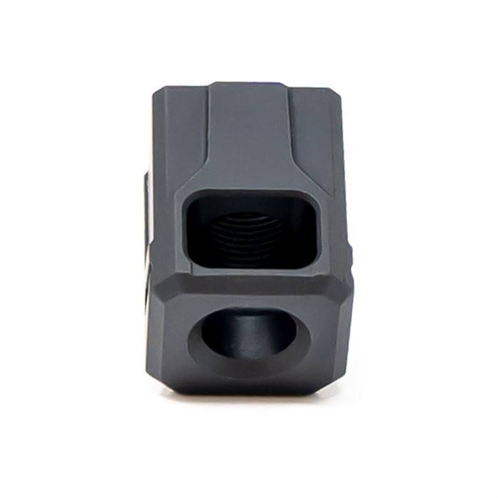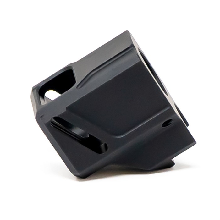 816341026209 Faxon Firearms Pistol Compensators have been tested and confirmed compatible with Glock® 43 Pistols. Constructed of 6061 aluminum with a black anodized finish, Faxon Pistol Compensators feature a uniquely angled front port single chamber design, enabling the compensator to improve consistency while reducing muzzle climb and recoil. The angled ports allow gas to deflect upwards as opposed to only deflecting sideways, reducing up and down muzzle movement and improving reliability. Barrel protrusion is designed to fit flush with the slide and has been optimized for Faxon branded barrels. For all other barrels, the barrel should protrude .600” or less for a flush fit. Each compensator comes complete with thread locker, two 6-32 set screws, and a 1/16 Allen wrench. SPECS Length: 1.125" Width: .865" Height: 1.269" Weight: .05lbs Thread: 1/2"x28 Caliber: 9mm *Compensators can affect the timing of your pistol and may require adjustments in lubrication, ammunition, and other areas. DISCLAIMER: “GLOCK” is a federally registered trademark of GLOCK, Inc. and is one of many trademarks owned by GLOCK, Inc. or GLOCK Ges.m.b.H. Neither Brownells nor this site are affiliated in any manner with, or otherwise endorsed by, GLOCK, Inc. or GLOCK Ges.m.b.H. The use of “GLOCK” on this page is merely to advertise the sale of GLOCK pistols, parts, or components. For genuine GLOCK, Inc. and GLOCK Ges.m.b.H. products and parts visit www.glock.com."Delivery time approx. 7-14 days.