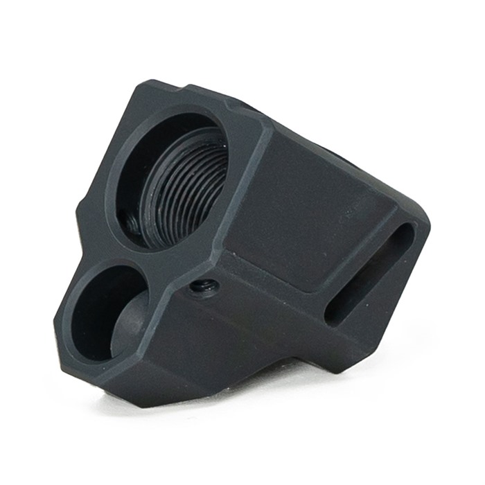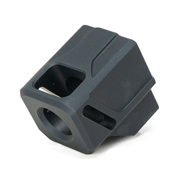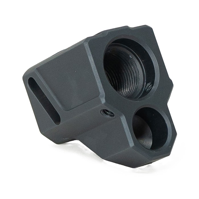 816341026186 Faxon Firearms Pistol Compensators have been tested and confirmed compatible with the M&P 1.0 Full-Size 4.25” pistol. Compensators were not tested on, but reasonably could be compatible with the M&P 2.0 Compact 4” and Full-Size 4.25” pistol platforms. Constructed of 6061 aluminum with a black anodized finish, Faxon Pistol Compensators feature a uniquely angled front port single chamber design, enabling the compensator to improve consistency while reducing muzzle climb and recoil. The angled ports allow gas to deflect upwards as opposed to only deflecting sideways, reducing up and down muzzle movement and improving reliability. Barrel protrusion is designed to fit flush with the slide and has been optimized for Faxon branded barrels. For all other barrels, the barrel should protrude .600” or less for a flush fit. Each compensator comes complete with thread locker, two 6-32 set screws, and a 1/16 Allen wrench. SPECS Length: 1.1in Width: .9in Height:1.3in Weight: .06lbs Thread: 1/2x28 Caliber: 9mm *Compensators can affect the timing of your pistol and may require adjustments in lubrication, ammunition, and other areas. Fitment with pistols or generations other than the S&W M&P 1.0 & 2.0 Full-Size (4.25”) and 2.0 Compact (4"") barrel pistol cannot be guaranteed."Delivery time approx. 7-14 days.