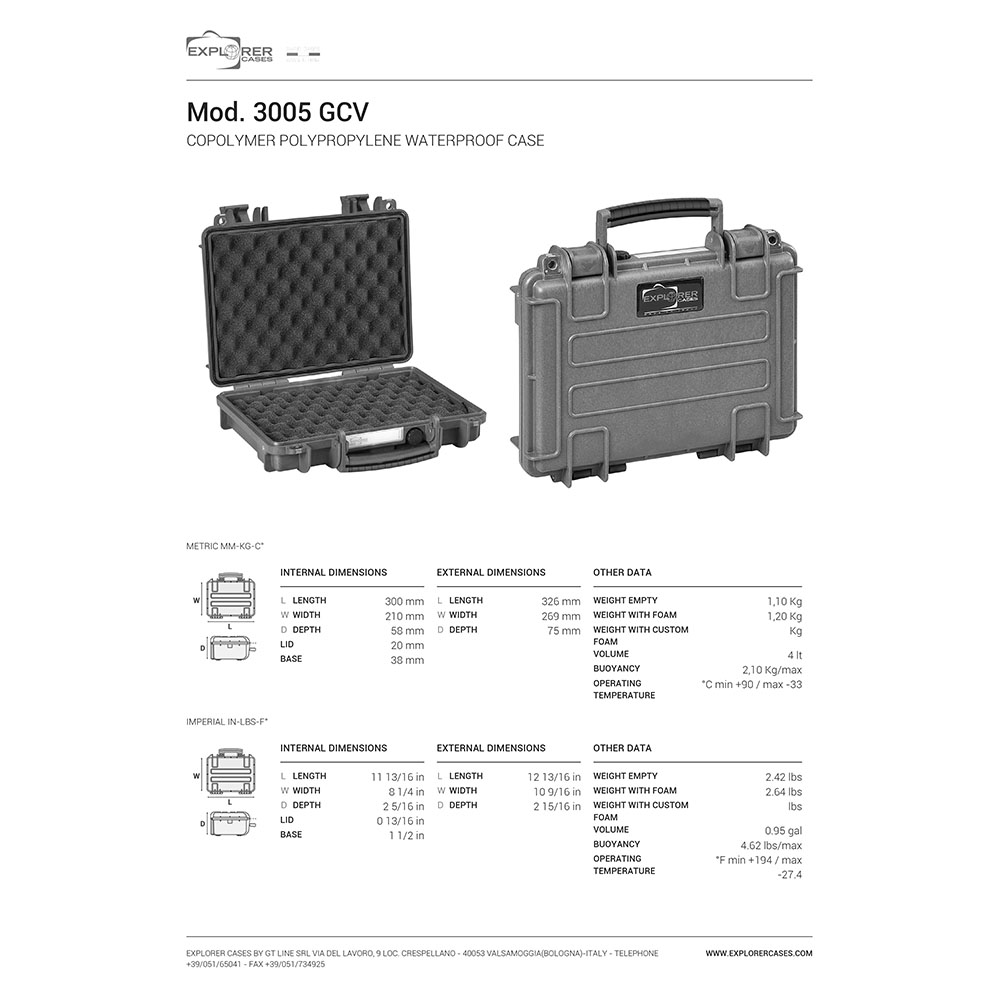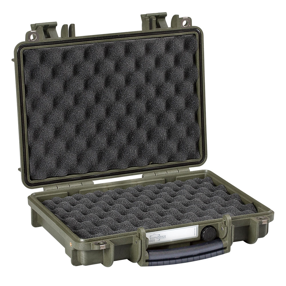 8024482182476 The best protection for your most precious baby - The ultimate weapon case with a variety of functions in the highest quality, manufactured by Explorer Cases in Italy. Specs: Length: 326mm (300mm inside) Width: 269mm (210mm inside) Depth: 75mm (58mm inside) Weight: 1,20kg (1,10kg empty weight without inlay) Color : Black Inlay: Convoluted Foam Literally indestructible The weapon cases from Explorer Cases each have corrosion proof metal hinges with lid stay features, which fixate the cover and hold it into place when opened. So you can rest assured that your weapon cases will assist you a long long time. Thanks to the locking latches the weapon cases are always highly secured. The O-ring gasket also makes them water resistant to a great extend. Every weapon case is equipped with a manual air pressure release valve. Therefore you can take it easy and will have no problem handling and closing the case. Exactly how you want it The cases are provided with internal cutouts for optional internal brackets or mounting rings, so you can store everything exactly as it is most suitable for your requirements. Every single suitcase comes with a waterproof removable label with which you can label your equipment or store your data. The case can either be transported traditionally via the large front handle or via optional shoulder straps, which can be easily attached to any model. The 3005 series is optimized for the transportation by airplane.Backordered, delivery from manufacturer overdue.