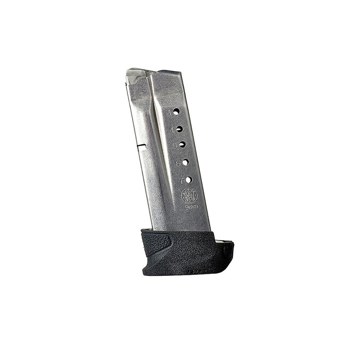 NOTE: Made for 7 round 9mm magazines and 6 round .40 cal magazines. The EMP+2 WILL work on the larger capacity factory magazines but with a noticeable gap between the EMP and pistol grip. The factory spacer will not fit flush with the EMP without slight modification.