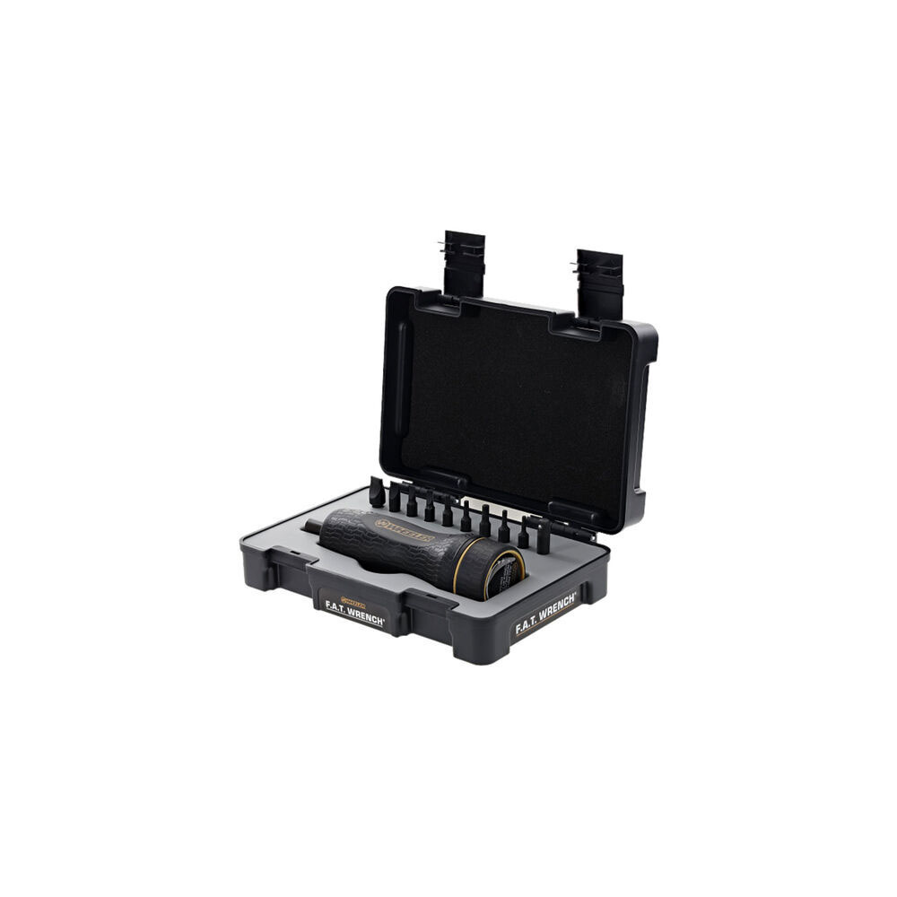 661120746980 The Wheeler F.A.T. Wrench (Firearm Accurizing Torque) brings perfect consistency to every screw on your rifle. This amazing, industry-standard handheld torque wrench lets you apply repeatable, accurate torque. Why is this important? Because precisely tightened screws and mounts prevent damage to optics and firearms and decrease the chances of failure in the field. Equipped with an adjustable torque range that delivers 10-65 in-lbs., it’s engineered to tackle a wide variety of common gunsmithing tasks like tightening scope bases and rings, action screws, and more with precision. The driver features a magnetized tip to prevent bits from falling out and a textured, rubber over-mold that improves ergonomics and grip while reducing hand strain during high torque applications. The 10 included bits are treated with a black phosphate coating that prevents rust and corrosion and extends tool life; guaranteeing that your tools will look great for years to come. All the contents are neatly organized and secured in a premium latching hard case that easily stacks on top of other Wheeler screwdriver sets for smart, convenient storage.Delivery time approx. 6-10 days.