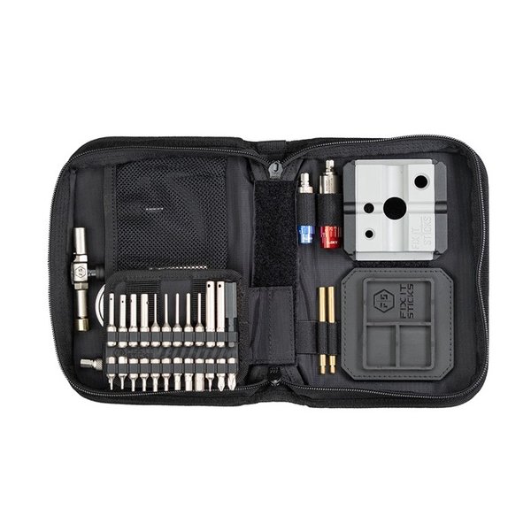 840447700282 FIX IT STICKS FIELD ARMORER’S KIT FOR AR-15 & GLOCK® Take your entire tool bench into the fi eld with this all-in-one armorer's toolkit. Covering the needs of two of America's most popular platforms, the AR rifl e and your Glock pistol, it's a comprehensive solution for maintenance, repair, and upgrades. This modular kit includes an assortment of general and specialty tools, from those that help maintain your AR's internals and properly torque down accessories, to specifi c Glock tools like the Front Sight Tool and Base Plate Removal Tool. No matter where you go, you'll be ready to keep your fi rearms in optimal working order. INCLUDES THE FOLLOWING SPECIALTY PARTS / BITS: All-in-One Torque Driver (15-65 in-lbs) Mini All-in-One Torque Driver (6-25 in-lbs) Ratchet T-Handle w/Locking Hex Drive Extension/punch holder 1/2" socket and 1/4" bit adapter set Set of Two Brass Cleaning Rods (accepts 8-32 threaded attachments) Set of two 8-32 adapters Cleaning Brush Steel Pick Bronze Scraper Brass Hammer Head Roll Pin Starter Punches (1/16”, 5/64” 3/32”, 1/8”) Roll Pin Punches (1/16”, 5/64” 3/32”, 1/8”) 3/32" Pin Punch Castle Nut Wrench Bolt Group Scrapers (.223, .308) A2 Sight Adjuster Pivot Pin Tools (AR10, AR15) Glock Channel Liner Installation and Removal Tools Glock Sight Tool Glock Magazine Base Plate Removal Tool Magnetic Tray Bench Block Soft Carrying Case TWENTY TWO 1/4” BITS (1” IN LENGTH): Torx: T8, T10, T15, T20, T25, T27 Hex: 2.5mm, 3mm, 4mm, 5mm, .050”, 1/16”, 5/64”, 3/32”,1/8” 7/64”, 5/32”, 3/16”, 1/4” Screwdriver: P1, P2, SL3/32 DISCLAIMER: “GLOCK” is a federally registered trademark of GLOCK, Inc. and is one of many trademarks owned by GLOCK, Inc. or GLOCK Ges.m.b.H. Neither Brownells nor this site are affiliated in any manner with, or otherwise endorsed by, GLOCK, Inc. or GLOCK Ges.m.b.H. The use of “GLOCK” on this page is merely to advertise the sale of GLOCK pistols, parts, or components. For genuine GLOCK, Inc. and GLOCK Ges.m.b.H. products and parts visit www.glock.com.Delivery time approx. 7-14 days.