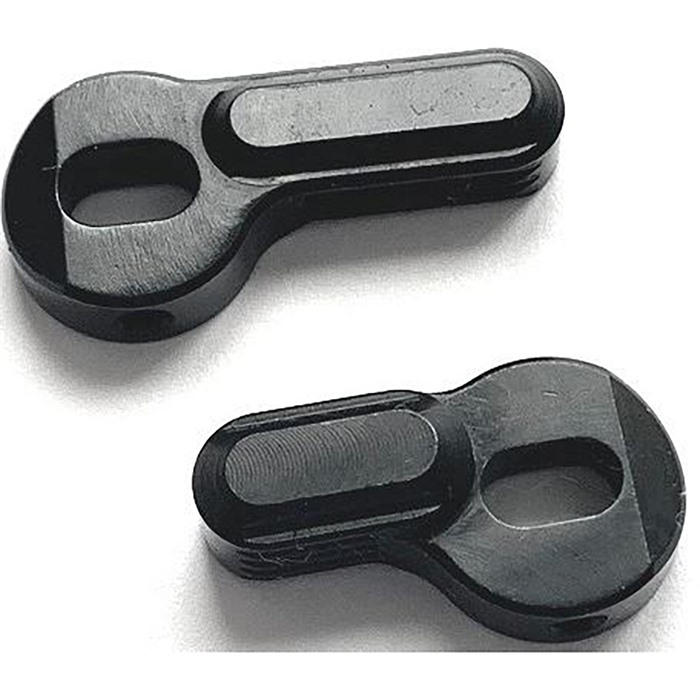 - The levers are serrated for better finger traction during use, and the ASF includes a single dimple as a position indicator, with all parts machined from 8620 steel and black nitrided for durability.