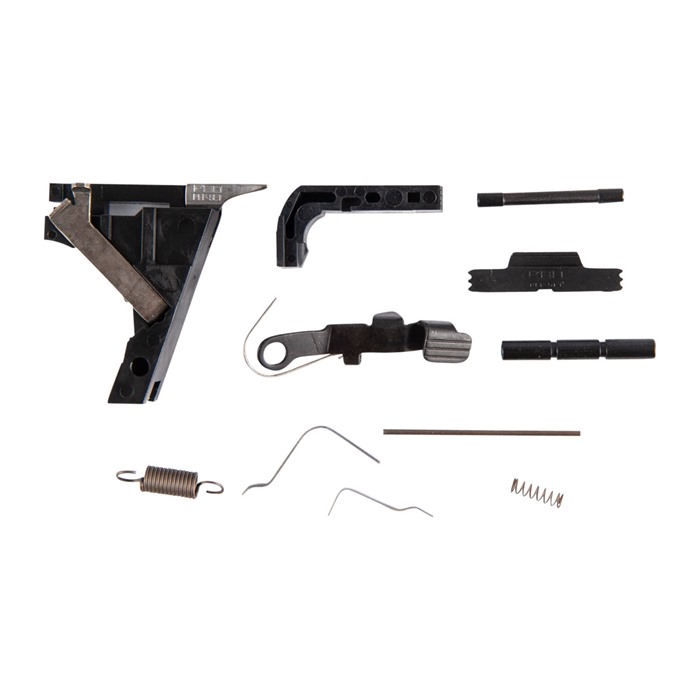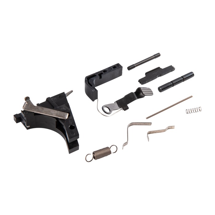 - Each kit contains essential components like slide lock, magazine catch, and trigger parts, with two trigger shoe options: curved and flat-faced.
