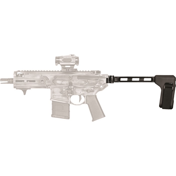 699618783148 FS1913 FOLDING PICATINNY PISTOL STABILIZING BRACE A low-profile, left side-folding, strut design compatible with all platforms utilizing an M1913 (Picatinny) interface at the rear of the receiver. The FS1913™ is a complete assembly offering pull-through opening and a solid lock-up when extended. FEATURES Advanced steel hinge design locks in both folded and extended positions Pull-through design offering quick deployment Offered with a light-weight 6061 aluminum strut US veteran designed and proudly made in the USA PRODUCT INCLUDES: Complete assembly Adjustable nylon strap FS1913™ SPECIFICATIONS FIT: Platforms with M1913 interface at rear of receiver (SIG MPX, SIG MCX, SIG Rattler, Rock River LAR-PDS, etc.) WIDTH [MAX]: 1.2" LENGTH: 9.6" (FS1913) / 9.25" (FS1913A) STRAP WIDTH: 1.0" WEIGHT:13.0 oz (FS1913) / 10.0 oz (FS1913A) COLOR: Black SB Tactical products are designed and intended only for use as forearm braces to provide a more stable firearm platform. They are neither designed nor intended to be fired from the shoulder. As configuration changes may alter the classification of a particular firearm, the user bears sole responsibility for determining the correct application of state and federal law.Delivery time approx. 7-14 days.