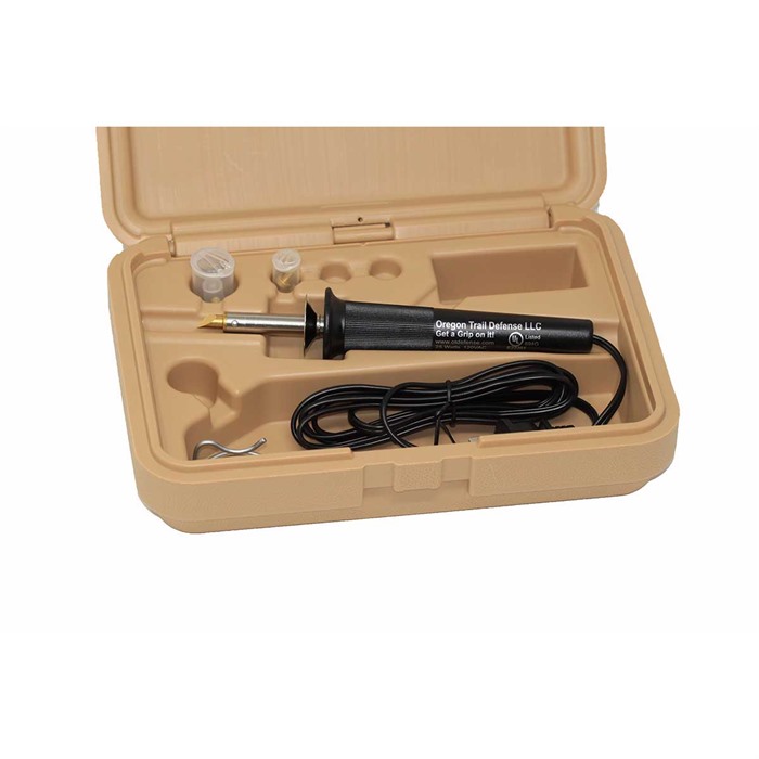 808887028236 FIREARMS STIPPLING TOOL KIT The Oregon Trail Defense Stippling Kit is a comprehensive solution designed for firearm enthusiasts and gunsmiths aiming to enhance the grip texture of polymer firearm frames through stippling. This kit provides the essential tools needed to create customized, non-slip surfaces, improving handling and control. Description and Features: At the heart of the kit is a USA-made Wall Lenk 25-watt wood burner featuring a short shaft, allowing for precise control during the stippling process. The kit includes six USA-made interchangeable tips, each designed to produce distinct textures: 20 LPI Waffle Tip: Ideal for creating a versatile, all-purpose grip pattern. 20 LPI Finish Tip: Perfect for crafting straight lines and sharp corners. OTD Rectangle Tip: Offers a unique rectangular pattern for varied textures. Small Round Tip: Produces fine dot patterns for subtle grip enhancement. Large Round Tip: Creates larger dot patterns for a more aggressive texture. Chisel Tip: Allows for precise lines and detailed stippling work. All components are neatly organized in a durable hard case, which also serves as a practice platform. The plastic of the case can hold most stipple patterns, allowing customers to test designs before application. A tool stand is included for safe placement of the heated tool during use. Specifications: Wood Burner: 25-watt, short shaft for enhanced control. Interchangeable Tips: Six distinct designs for varied textures. Hard Case: Doubles as a practice platform for stipple patterns. Tool Stand: Provides a safe resting place for the heated tool. Customer Insights: Customers of the Oregon Trail Defense Stippling Kit appreciate its comprehensive selection of high-quality tools, noting that it effectively consolidates essential stippling implements into a portable and organized package. The precision and variety of the interchangeable tips are frequently highlighted as standout features that enhance both the functionality and value of the kit. Incorporating the Oregon Trail Defense Stippling Kit into your firearm customization routine ensures that you are equipped with a versatile and reliable set of tools capable of creating personalized grip textures, thereby enhancing your firearm's handling and performance.Delivery time approx. 7-14 days.