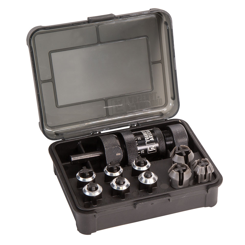 Included with the trimmer is a storage case that conveniently holds collets and collars, making it an essential tool for any gunsmith or shooting enthusiast.