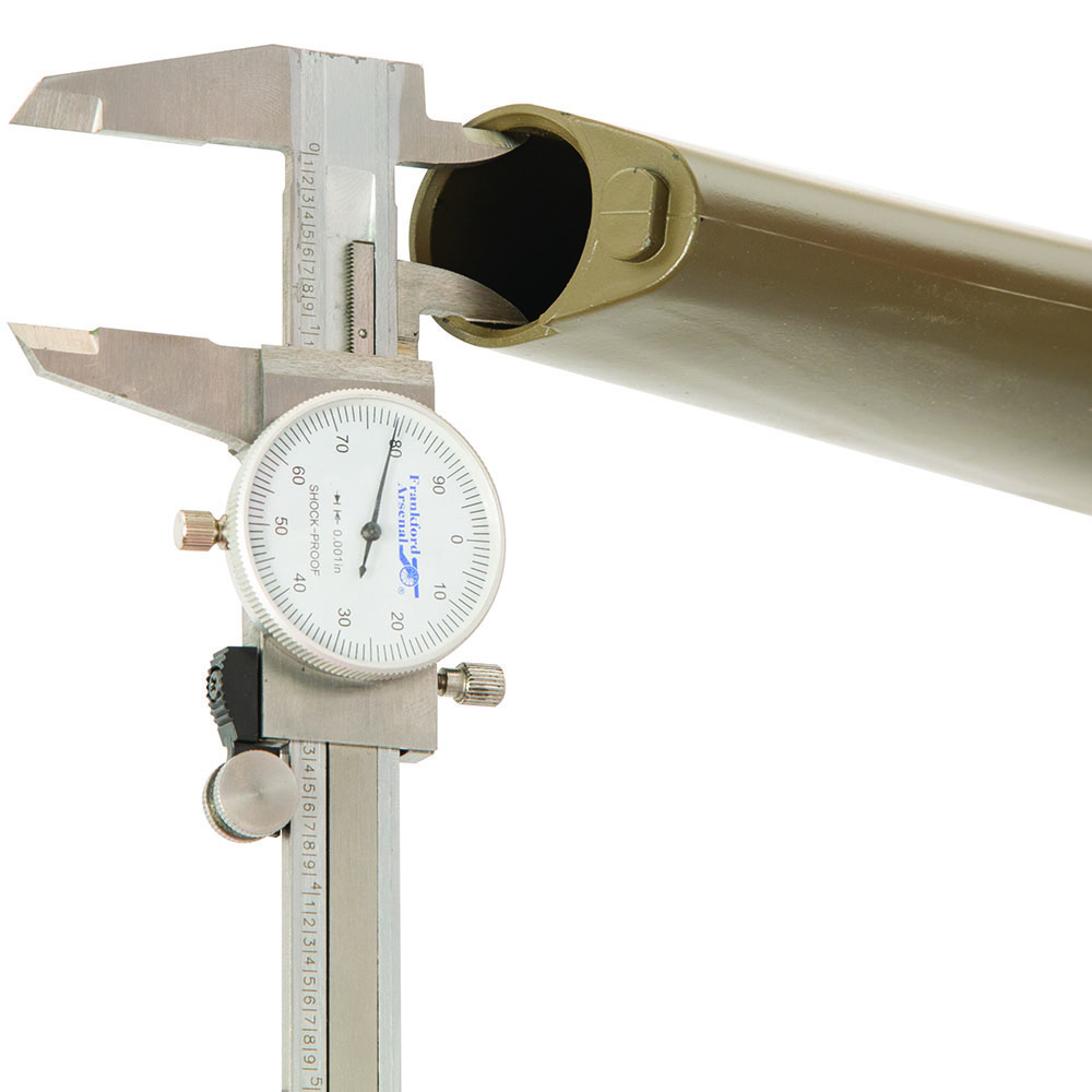 Reloading ammunition requires attention to many critical cartridge dimensions, including case length, neck and base diameters, overall length, primer pocket depth, and more. The Frankford Arsenal® Stainless Steel Dial Caliper makes verifying these dimensions quick and convenient.