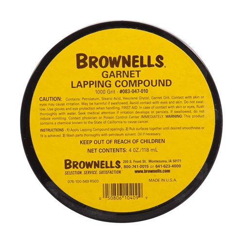 Introducing the BROWNELLS GK-10 GARNET LAPPING COMPOUND, a fast-working and non-embedding petroleum abrasive paste designed for honing close-fitting parts. This compound ensures an ultra-smooth, friction-free fit, making it an essential tool for any gunsmith or firearm enthusiast.