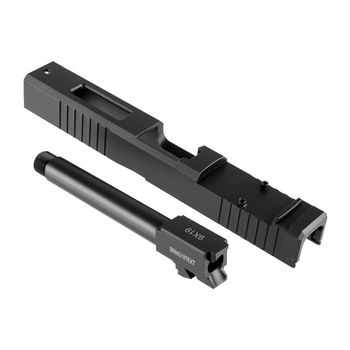 - Available with window cuts for reduced recoil and enhanced barrel cooling, the kit offers a choice of threaded or non-threaded barrels, made with a nitride finish for durability.