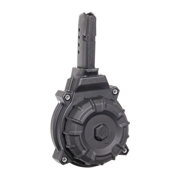 Upgrade your shooting experience today with the PRO MAG DRUM MAGAZINE 50-RD POLYMER BLACK 9MM. Spend more time on the range and less time reloading!