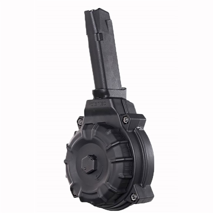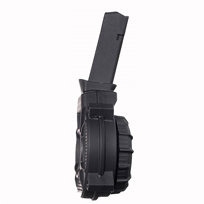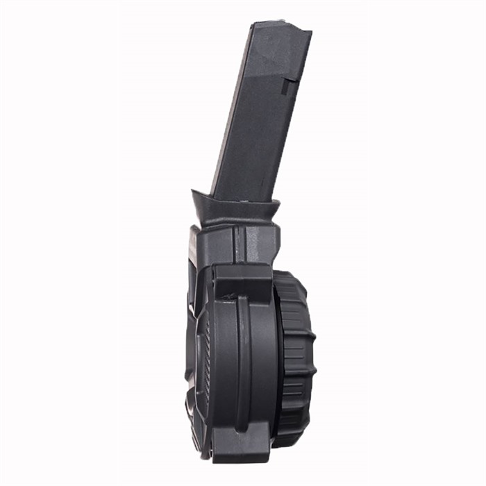 - This high-capacity drum magazine is made in the USA and sports an all-black finish to match the Glock® pistols.