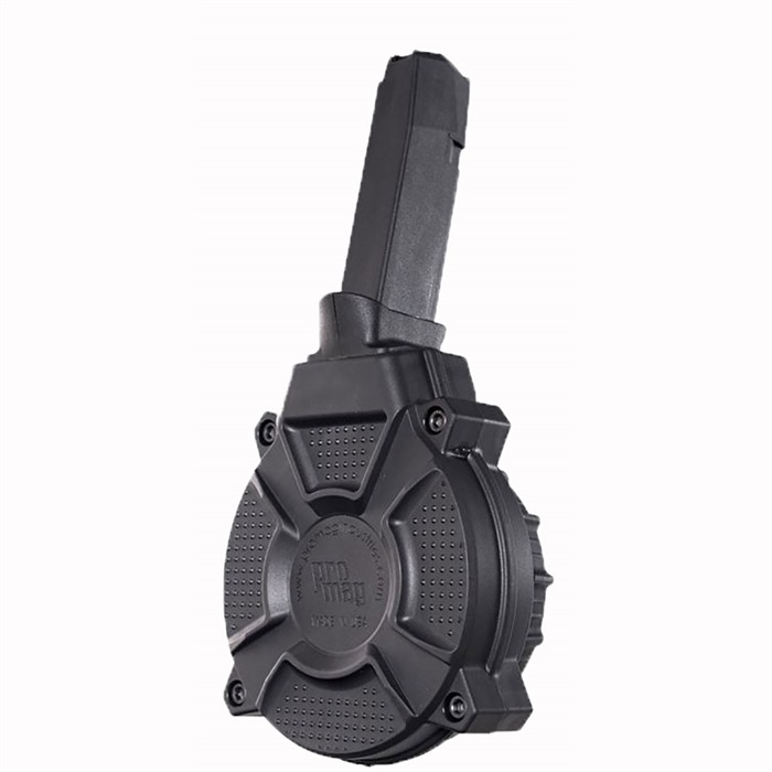 - The Pro Mag Drum Magazine is designed for Glock® 48/43X, enhancing capacity with a 50-round drum for 9mm cartridges.