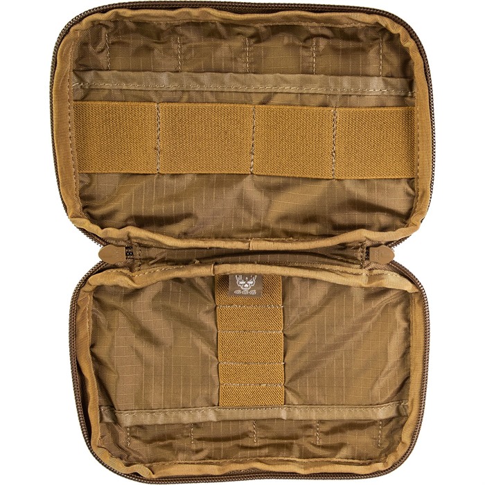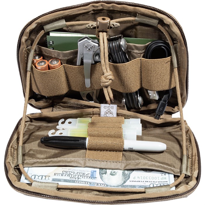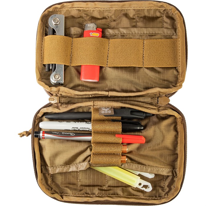 - Interior includes a pocket and multiple elastic loops for storing smaller items such as pens, lighters, small multitools, and batteries