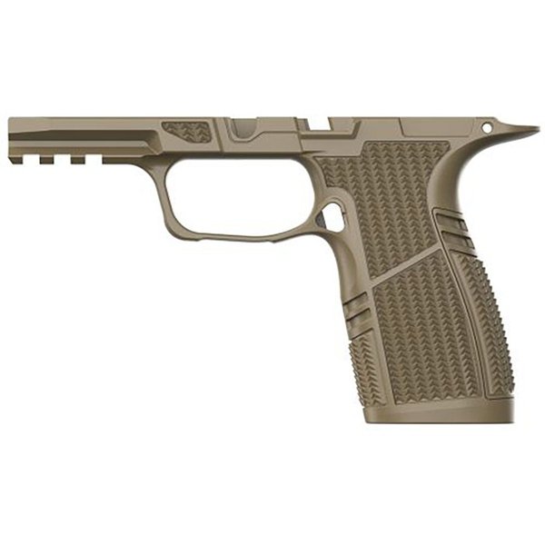 TYRANT CNC® GRIP MODULE W/1913 RAIL FOR SIG SAUER P365 X-MACRO® The Evolution of the P365 Platform — Perfected by Tyrant CNC Sig Sauer’s P365 series changed the game when it launched. It wasn’t just another micro-compact—it was the first pistol to offer serious capacity in a truly concealable footprint. But with each iteration, Sig continued to refine the concept, pushing boundaries in modularity, shootability, and performance. Enter the P365 X Macro—the most capable version to date. And now, Tyrant CNC have taken that platform even further with the Tyrant CNC P365 X Macro Grip Module. Built from Tyrant CNC’s ultra-rugged and premium carbon and glass-filled polymer composite, this full-length grip module improves on the factory frame with better ergonomics, enlarged dovetail, high grip undercut, and customized variable depth texturing—giving you the control and compatibility that serious shooters demand. What Makes the X Macro the Best P365 Yet? Unlike the original P365 or even the P365 XL, the X Macro offers something the others don’t: a full 17-round capacity in a flush-fit magazine—without bloating the gun’s profile. That’s full size Glock G19-level firepower in a slimmer, more concealable package. Sig achieved this with a redesigned frame and magazine system that increased capacity without drastically increasing the grip size. This not only improves shootability and control, it also eliminates the need for awkward magazine extensions or grip sleeves that plagued earlier variants. And with the X Macro’s 3.7” dust cover, you get full accessory compatibility—ideal for tactical applications, home defense, or any scenario where a mounted light is essential. FEATURES Full-Length 1913 Picatinny Rail: Unlike the short proprietary rails on earlier P365 models, this grip features a full 3.7" dust cover with a true mil-spec Picatinny rail. That means no adapters, no limitations—mount full-size lights and lasers without compromise. Enlarged Dovetail: Tyrant CNC took a feature seen mostly and only on full size firearms and added it to their grip module. Their dovetail gives the operator better recoil control which leads to more accurate follow up shots. Carbon + Glass-Filled Polymer Construction: Stronger than traditional polymer, lighter than aluminum, all while feeling premium. This proprietary blend offers serious rigidity, heat resistance, and impact durability—ideal for hard-use environments. Improved Ergonomics: Featuring reduced trigger reach, high grip undercut and an aggressive grip texture, this grip enhances comfort and control under rapid fire or stress shooting conditions. Flared Magwell: Speed up your reloads with a subtly integrated magwell that guides your mags into place with less fumbling and more consistency. True full-size X Macro grip module – not a hybrid or shortened variant Accepts Sig 17-round X Macro magazines (flush fit) Full-length 3.7” dust cover with 1913 Picatinny rail Made from carbon and glass-filled polymer composite Flared magwell for faster reloads Reduced trigger reach for better control Drop-in compatibility with Sig FCUs and P365 X Macro slides Supports lights like TLR-1 HL, SureFire X300, Inforce Wild2 Not California compliant – for use with standard capacity mags only SPECS Material: Carbon + glass-filled polymer Length: Full X Macro spec (3.7" dust cover) Magazine Compatibility: 17-round X Macro (standard) Weight: Lightweight, reinforced polymer Installation: Drop-in; no modifications required