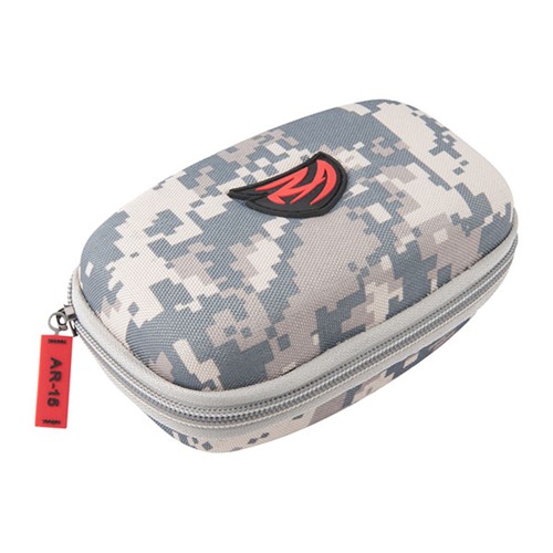 EVA-molded case with a digital camouflage exterior. Dimensions: 2" high, 3.5" across, 6" long.