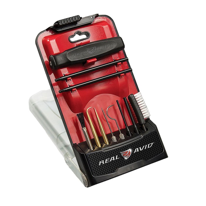 813119011931 Real Avid Gun Boss Pro Precision Cleaning Tools meet the needs of gun owners who need specially designed products to get in and remove every last piece of carbon buildup in their firearms. The Real Avid Gun Boss Pro Precision Cleaning Tools include coated steel rods, as well as nylon and oil-application brushes and a number of picks and punches. Includes carbon scraper Also features 90-degree brass scraper Tools are constructed with 8-32 threads The Real Avid Gun Boss Pro Precision Cleaning Tools ships in a polycarbonate storage case that features the company's exclusive kickstand design for easy deployment.Delivery time approx. 7-14 days.
