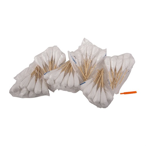 - Disposable Bore Cleaning Swabs: Tightly wound, low-lint cotton heads effectively wipe away fouling and powder residue.
