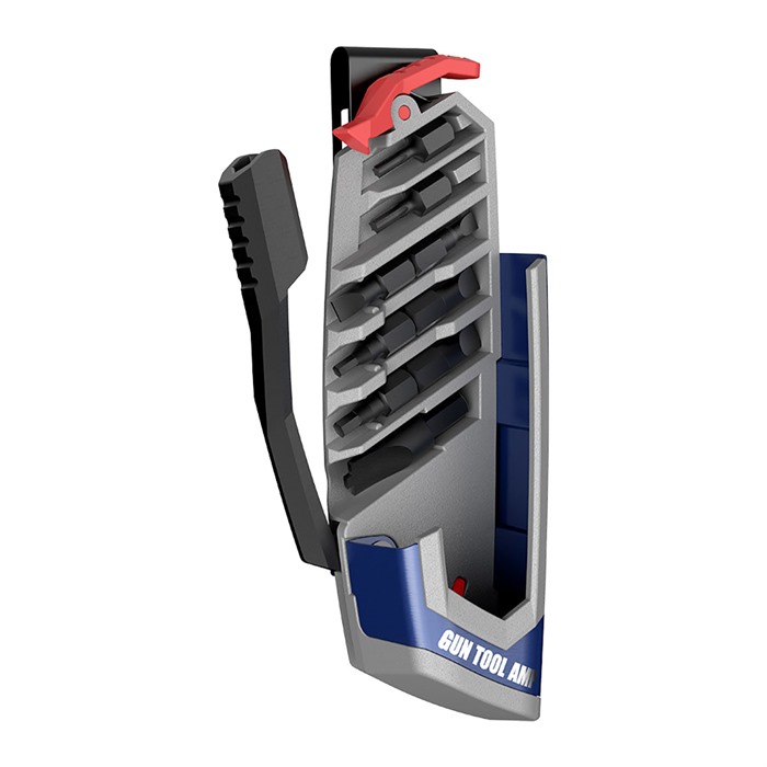 - Quick deploy holster: Carries the multi-tool and houses the bits, featuring a fold-out locking driver.