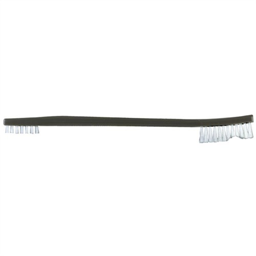 050806101111 Developed for the U.S. Armed Forces to clean M16/M4 rifles quickly and effectively and get them back into action. Double-ended, solvent-proof, polypropylene handle provides a large, contoured series of nylon bristles to cover curves and open areas, while the short, extra-stiff, narrow line of bristles tackles the really tough crud in those hard to reach areas. Gets down inside actions, pistol slides, around the extractor star on revolver cylinders, plus provides superior scrubbing action for individual parts and hard-to-reach areas on shop machinery. Enough bristle backbone to remove greasy gun dirt, yet won’t scratch delicate blued surfaces. We’ve used them with d’Solve™, EZ-Soak™, WD-40, Hoppes bore cleaners, and a host of other solvents and oils on everything from fine custom rifles to neglected, black powder guns. An exceptionally good, practical, cleaning brush for use at the bench or in the field.Delivery time approx. 7-14 days.