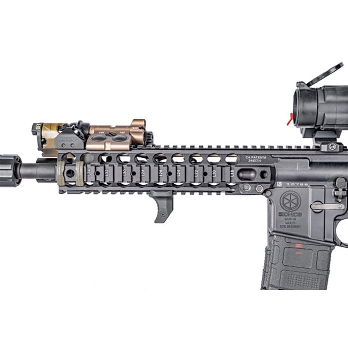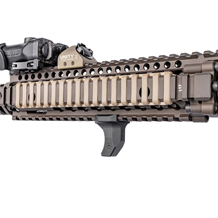 - Can be reversed and placed at the front of the handguard to prevent the support hand from slipping off