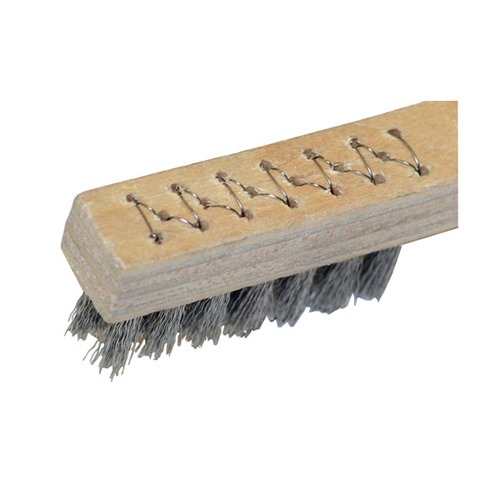 050806030138 Our finest, small cleaning brushes. Stainless steel stitching laced all the way through the handle keeps the bristles in place and prevents pull-out under even the heaviest use. Made for the aircraft industry to exceed mil specs so you know they'll last in the gun shop too. Handle is 7-ply, no split laminate that stands up to all solvents and hard scrubbing. Available in three bristle materials to suit any job. Stainless Steel - Straight wire that gives a slightly softer scrubbing action but still holds its shape even with repeated use. Excellent for scrubbing and degreasing parts in solvent prior to polishing and refinishing. Brass - Straight wire for a gentler action that still gets through built-up grease, oils and fouling. Nylon - Tough, black nylon provides no- scratch cleaning of surfaces and recesses. SPECS: All have: .005” (.127mm) diameter bristles 3 rows of 7/16” (11.1mm) long bristles set 3/8” (9.6mm) wide Bristles are 1-3/8” (3.5cm) long Overall Length: 7.76” (19.7cm)Delivery time approx. 7-14 days.