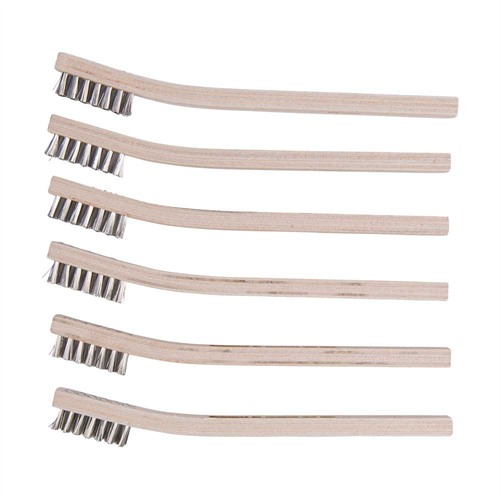 050806030190 Our finest, small cleaning brushes. Stainless steel stitching laced all the way through the handle keeps the bristles in place and prevents pull-out under even the heaviest use. Made for the aircraft industry to exceed mil specs so you know they'll last in the gun shop too. Handle is 7-ply, no split laminate that stands up to all solvents and hard scrubbing. Available in three bristle materials to suit any job. Stainless Steel - Straight wire that gives a slightly softer scrubbing action but still holds its shape even with repeated use. Excellent for scrubbing and degreasing parts in solvent prior to polishing and refinishing. Brass - Straight wire for a gentler action that still gets through built-up grease, oils and fouling. Nylon - Tough, black nylon provides no- scratch cleaning of surfaces and recesses. SPECS: All have: .005” (.127mm) diameter bristles 3 rows of 7/16” (11.1mm) long bristles set 3/8” (9.6mm) wide Bristles are 1-3/8” (3.5cm) long Overall Length: 7.76” (19.7cm)Delivery time approx. 7-14 days.