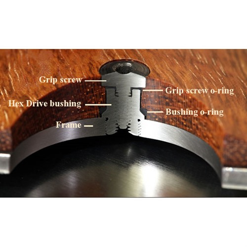 Completely simplifies the installment and removal of grip screw bushings. No more bunged up grip bushing slots to file and trim when the spade slips out of the slot during installation, and a much cleaner look to them as well. Great idea from Challis Grips.