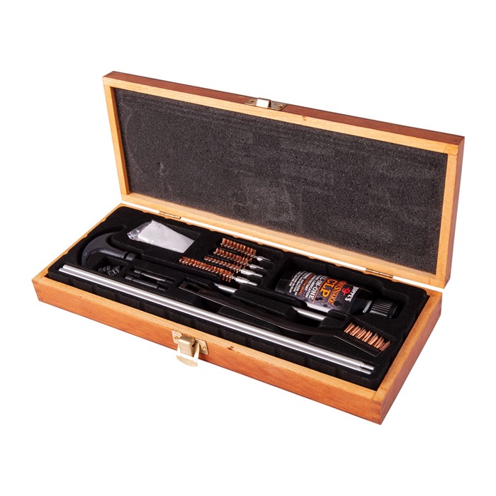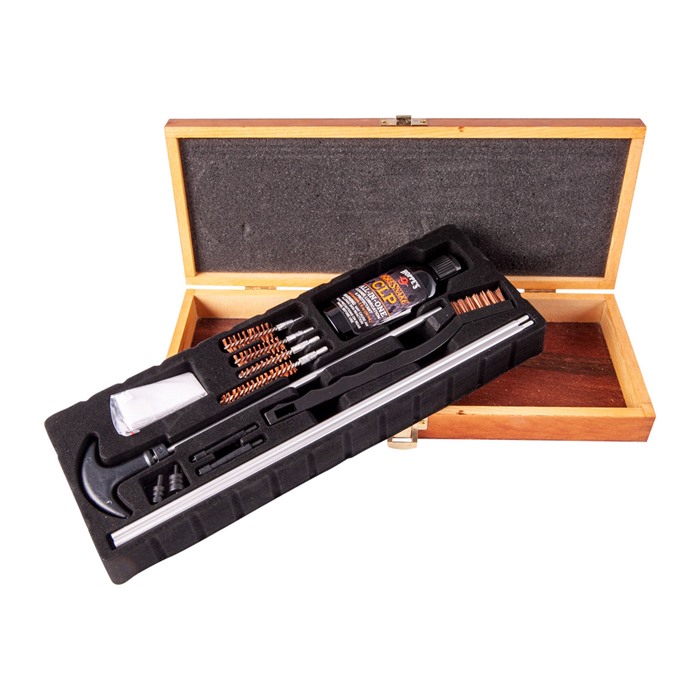 Effortlessly maintain your firearms with the WOOD BOX CLEANING KIT!