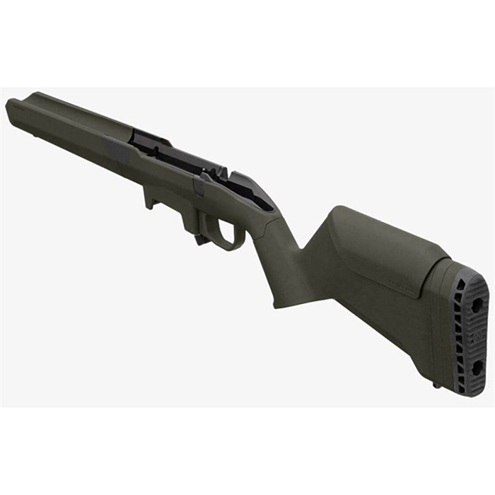 MAGPUL® HUNTER LITE ADJUSTABLE STOCK FOR RUGER AMERICAN® The Hunter Lite – Ruger American Short Action is a purpose-built hunting stock that is designed for Ruger American and Ruger American Gen II rifles chambered in short-action calibers. The Hunter Lite streamlines the design of our original Hunter Stocks, reducing the weight and size to provide a fully featured upgrade for those wanting a hunting rifle that won’t weigh them down during extended outdoor pursuits. The result is a stock that weighs approx. 2 lbs., 6 oz. or almost 25% less than the Hunter American Stock, with a forend that’s almost 25% narrower than the original. Featuring enhanced ergonomics, the Hunter Lite Stock – Ruger American Short Action is compatible with both right and left-hand rifles by simply swapping out an inlet insert on the stock. Other key features of the Hunter Lite include an aluminum V-bedding block featuring reinforced steel pillars to prevent compression and deformation while shooting. The buttstock and forend also have integral sling swivel studs for use with a variety of slings and bipods, and removable half-inch spacers for LOP adjustment and snap-on cheek risers for adjustable comb height. The enlarged trigger guard allows comfortable use with gloves and easy access to the ambidextrous magazine release. The forend of the Hunter Lite is compatible with barrel profiles up to Medium Palma and it includes multiple M-LOK slots accommodate your choice of M-LOK accessories. Made in the USA. FEATURES EXTRUDED ALUMINUM V-BEDDING BLOCK Reinforced steel action screw pillars provide extra rigidity, prevent stock compression and deformation while shooting Right and left-hand configurable by the end user by swapping out inlet insert Accommodates barrel profiles up to Medium Palma AICS-COMPATIBLE MAGAZINE WELL Ambidextrous magazine release paddle Enlarged trigger guard for use with gloves Magazines sold separately ADJUSTABLE AND VERSATILE Four (4) removable 1/2" buttstock spacers for adjustable LOP, 13”-15” Snap-on 3/8"" cheek riser for adjustable comb height Sling swivel studs on buttstock and forend M-LOK slots on forend SPECS Platform: Ruger American® Butt-Pad Dimensions: 1.5 x 4.9 in. Cheek Height Adjustment Range: 3/8 in. via included Riser Length of Pull: 13-15 in. LOP using included Spacers Weight: 2.6 lbs w/ two Spacers Width of Stock, max: 1.75 in. COMPATIBILITY Compatible with Ruger American Rifle & Ruger American Rifle Generation II right-hand & left-hand models chambered in short action calibers. NOT compatible with rifle models equipped with an AR-magazine capable stock from the factory. Accepts all factory Ruger barrels as well as aftermarket barrel profiles up to a Medium Palma (0.920"" dia. 5.50"" forward of the breech). Accepts most factory and aftermarket triggers.