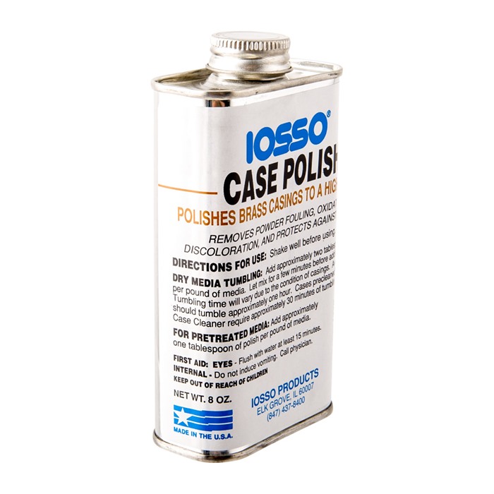 054094106001 Iosso Case Polish cleans and polishes brass casings to a high luster. The polish removes powder fouling, residue, oxidation, tarnish, and discoloration. Iosso Case Polish leaves the casings with a highly polished look, and keeps them from tarnishing for a long time. You can also use the polish on casings that have been pre-cleaned with Iosso Case Cleaner. Add Iosso Case Polish to the media before tumbling. Add two tablespoons per pound of untreated meda, or one tablespoon per pound of pretreated media and tumble cases for about one hour. Heavily tarnished or dirty cases will need longer tumbling time. Now USDA Certified Bio-Based Formula. No petroleum distillates, no odor or VOC.Backorderable, delivery time approx. 4-12 weeks from the USA warehouse.
