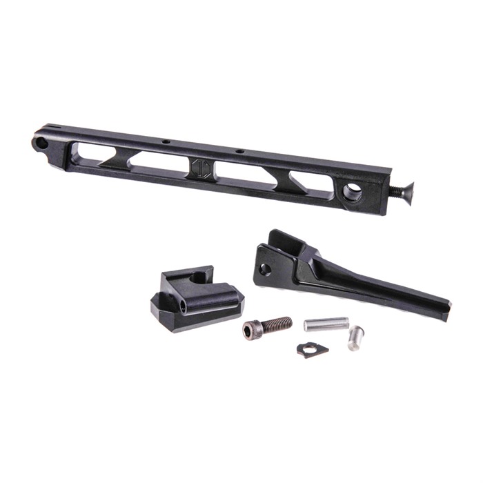 - The 8-inch Arm Bar with Folding Buttplate is made from lightweight and rigid 7075 T6 Aluminum, featuring a hard-coat anodized finish.
